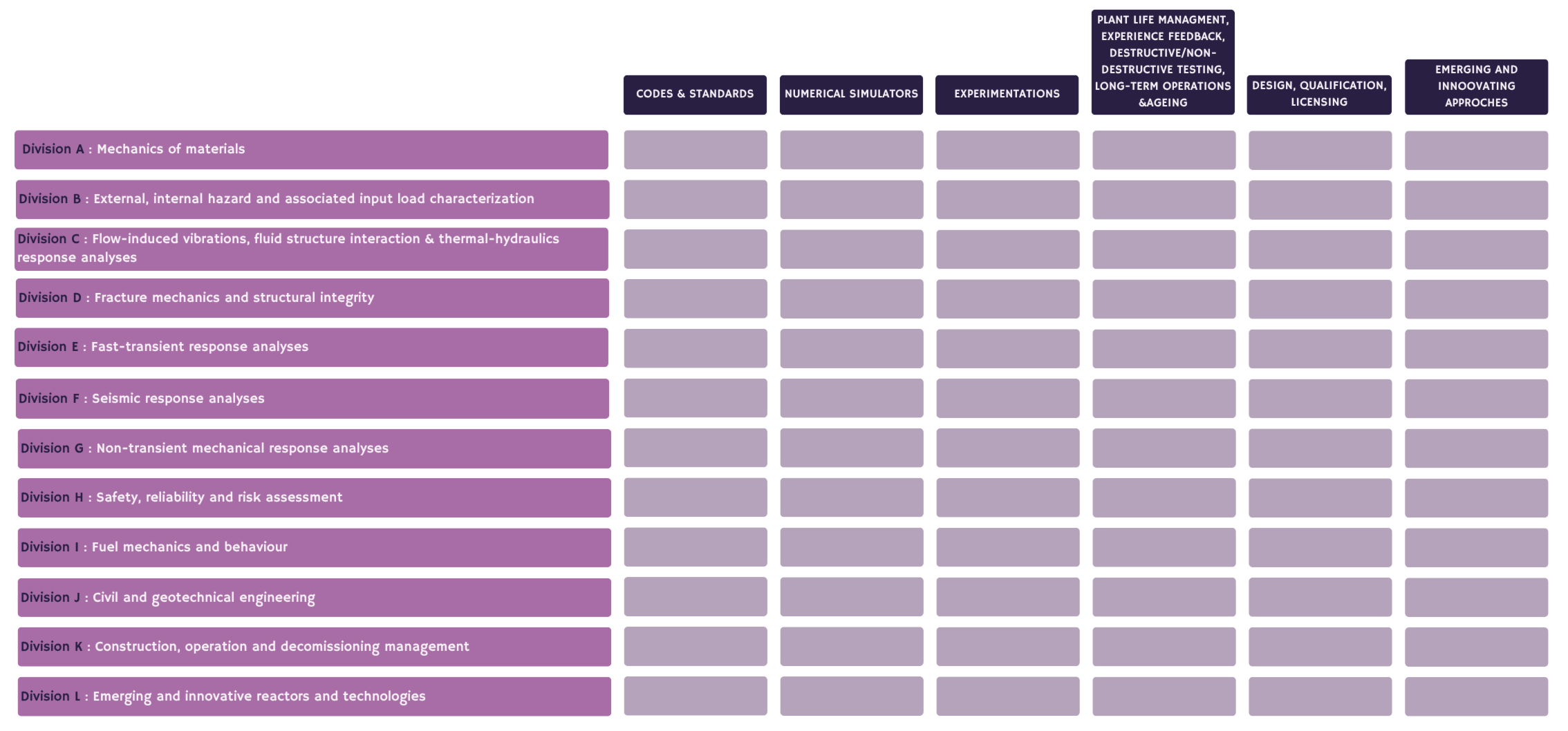 - Characterization of properties of materials such as metals, concrete, graphite, high-density polyethylene, rubber, plastics, fuel, cladding and pellet, ceramics, composites, nanomaterials and their constitutive laws for behaviour under monotonic, cyclic and dynamic loadings